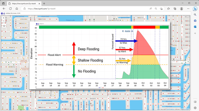 In the case of Orlo Vista, a two-day warning was provided before shallow flooding occurred, and a three-day warning was provided before maximum flood conditions occurred.