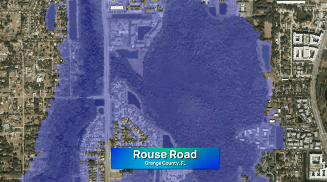 The Orlo Vista neighborhood in Orange County, Florida, is in a landlocked depression and depends on a large pump station and man-made lake system for flood protection.